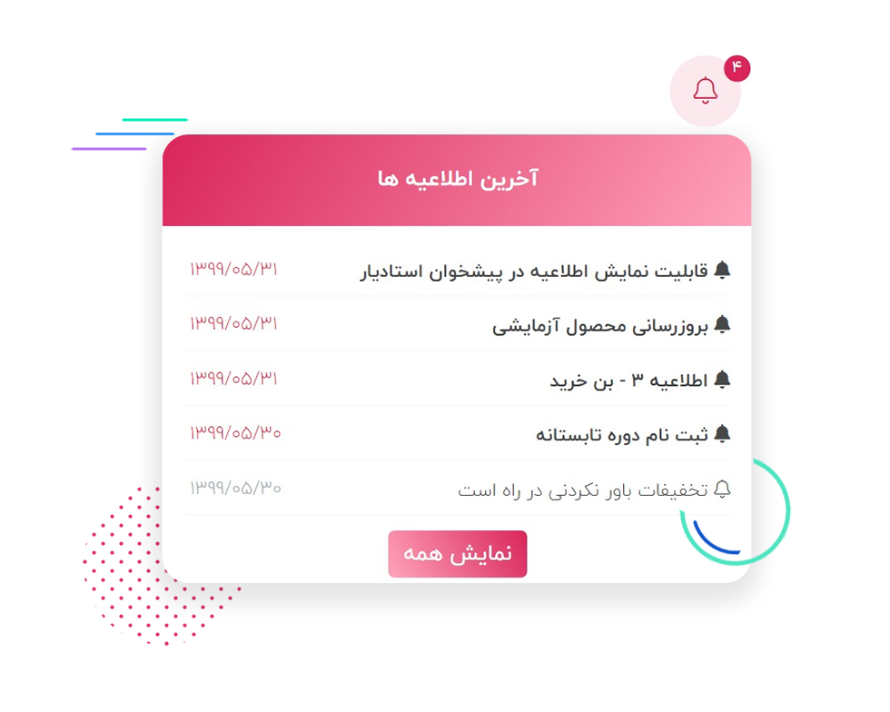 • امکان طراحی محتوای اطلاعیه با المنتور