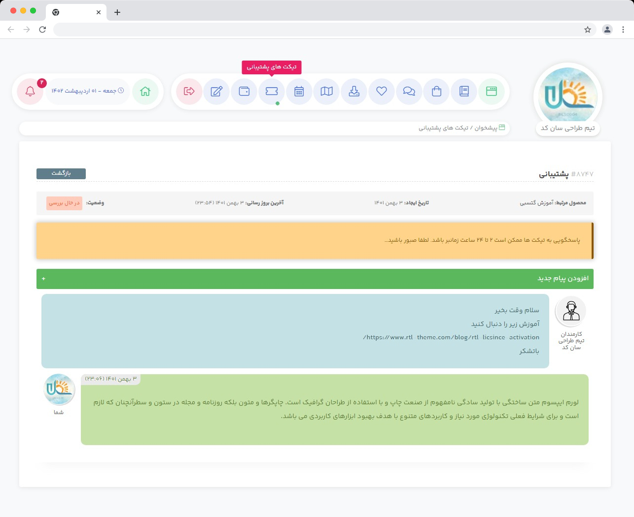 • قابلیت تعیین پشتیبان برای پاسخگویی تیکت ها